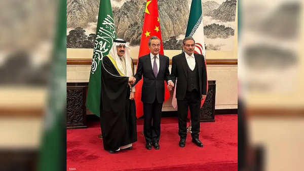 ويوم الخميس، أعلنت السعودية وإيران والصين في بيان ثلاثي مشترك الاتفاق على استئناف العلاقات الدبلوماسية بين الرياض وطهران، وإعادة فتح سفارتيهما وممثلياتهما خلال مدة أقصاها شهران، والاتفاق على اجتماع وزيري الخارجية في البلدين لتفعيل ذلك وترتيب تبادل السفراء، ومناقشة تعزيز العلاقات بينهما، وتأكيد البلدين على احترام سيادة الدول وعدم التدخل في شؤونها الداخلية.