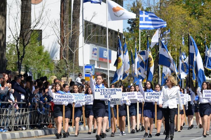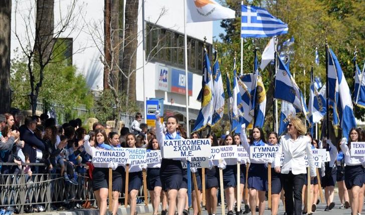 ويشهد عيد الاستقلال اليوناني ، وهو أيضًا عطلة عامة في قبرص ، مشاركة تلاميذ المدارس في المسيرات في جميع المدن.