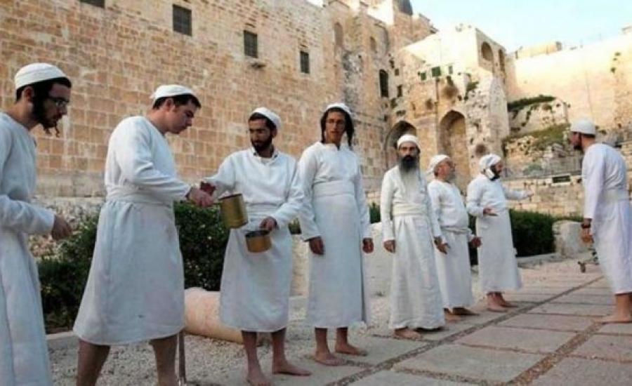 وتشمل مراسم “عيد الفصح” اليهودي وفق الزعم التلمودي قيام حاخام أو مستوطن يهودي متدين بزي “كهنة الهيكل” المزعوم بذبح القربان عند أقدام المذبح وشوائه.