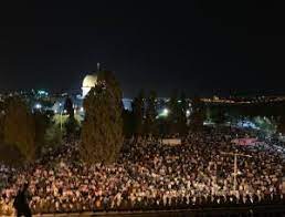 ومع ساعات الإفطار وصل عشرات الآلاف إلى باحات المسجد الأقصى المبارك، قبيل اعتكاف ليلة السابع وعشرين من شهر رمضان التي يُعتقد أنها “ليلة القدر”.
