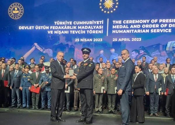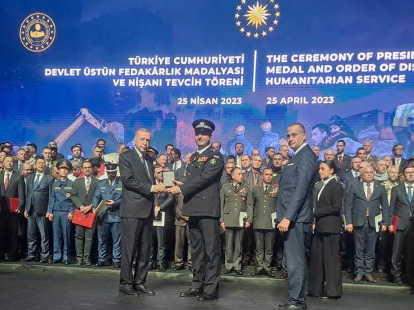 أردوغان يسلم قائد فريق البحث والإنقاذ الدولي الأردني وسام “التضحية”