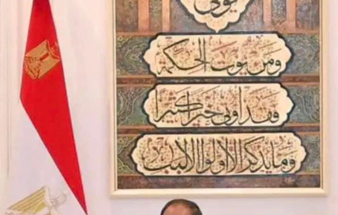 لوحة بآية قرآنية خلف السيسي تشعل مواقع التواصل