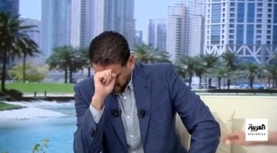 مذيع العربية يبكي على الهواء