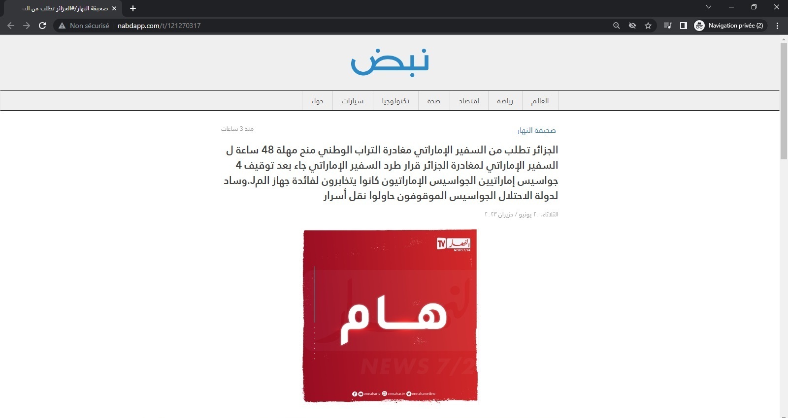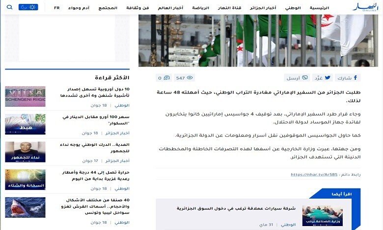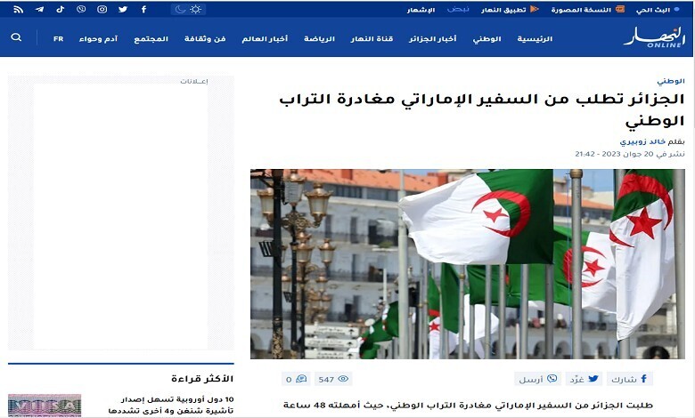 استنفار في الجزائر بعد نشر قناة خبرا حول الطلب من سفير الإمارات المغادرة