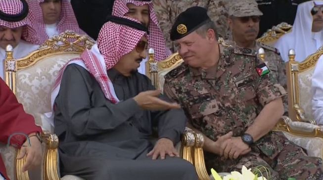 وكالة الناس – نظمت القوات العسكرية المشاركة في رعد الشمال الجمعة، عرضاً عسكرياً بحفر الباطن شمال شرق السعودية بحضور الملك سلمان وجلالة الملك عبدالله الثاني، وعدد من قادة الدول العربية والإسلامية.