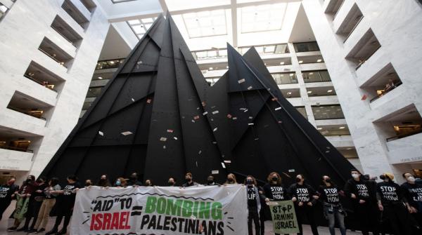 ناشطون ينظمون احتجاجا بمبنى لمجلس الشيوخ الأميركي ويطالبون بهدنة في غزة
