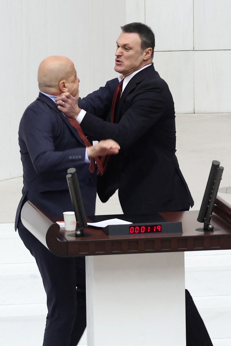 واندلع الشجار عندما قام النائب “ألباي أوزالان” عن حزب العدالة والتنمية الحاكم، بتوجيه لكمة إلى النائب المعارض “أحمد سيك”، بينما كان الأخير ينتقد الحكومة بشأن النائب المعتقل “جان أتالاي”.