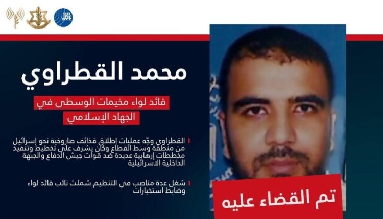 وكالة الناس – زعم جيش الاحتلال ، السبت ، اغتيال من وصفه بقائد لواء “مخيمات الوسطى في الجهاد الإسلامي” محمد القطراوي.