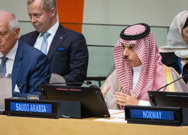 وقال: “باسم الدول العربية والإسلامية وشركائنا الأوروبيين نُعلن إطلاق التحالف الدولي لتنفيذ حل الدولتين، ويطيب لي أن أدعوكم لحضور أول اجتماع في السعودية للإسهام في تحقيق السلام”.