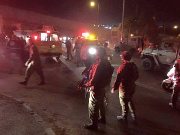 حيث أصيب ثلاثة أشخاص أحدهم جندي بجراح متوسطة فيما عولج أخر بالمكان كان قد أصيب بشظايا ومستوطنة أخرى أصيبت بالهلع، مساء اليوم الثلاثاء، جراء انفجار قرب مدخل بلدة حزما شمال شرق القدس المحتلة.