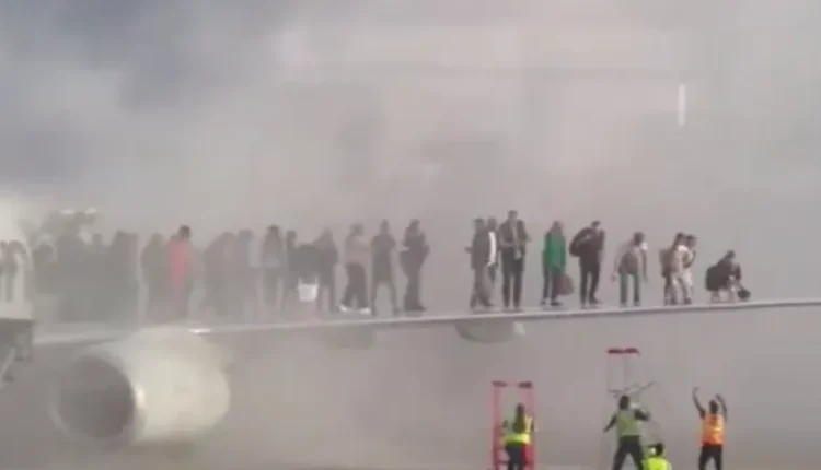 وظهر في مقاطع فيديو منتشرة على مواقع التواصل الاجتماعي، الركاب وهم يغادون الطائرة، بعد أن اشتعلت النيران في أحد المحركات.