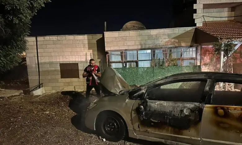 مستوطنون يحرقون مركبة عائلة شهيد في بيتين شرق رام الله