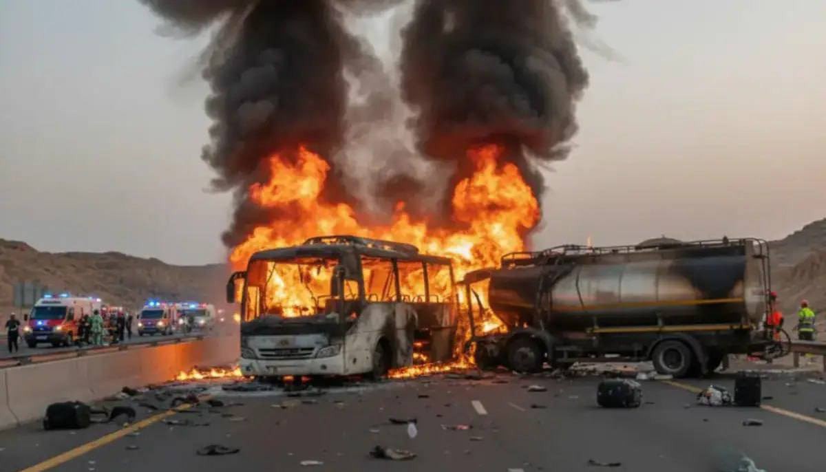 المدينة المنورة.. وفاة 45 معتمراً هندياً إثر اصطدام حافلتهم بشاحنة وقود .. فيديو