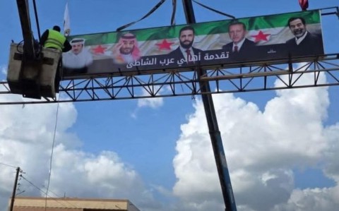 وكالة الناس -في ذكرى إسقاط نظام الرئيس السوري السابق بشار الأسد الأولى، قام سوريون في طرطوس، الإثنين، برفع لافتة كبيرة تضم صورة الرئيس العراقي الراحل صدام حسين، إلى جانب الرئيس السوري أحمد الشرع، والرئيس التركي رجب طيب أردوغان، وولي العهد السعودي الأمير محمد بن سلمان، وأمير قطر تميم بن حمد.